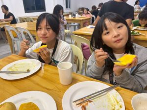 こちらはE-roomの校長先生から1日頑張ったご褒美にもらったお夜食です。マンゴーやスナック、スイカなど日によって変わります。