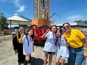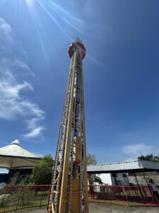 まずはこのフリーホール。この遊園地の一番の絶叫アトラクションといえるでしょう。何度も上下に急降下する動きに絶叫好きの子どもたちがハマっており、小学生の生徒は10回以上乗ったと言っていました。