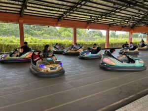 絶叫系のアトラクションは苦手という子どもたちはこのバンプカーというアトラクションに何度も乗っていましたよ。こちらは自分で運転できる車で、他の車とぶつかっても大丈夫なように車の周りにタイヤのようなクッションがついています。わざとぶつかって楽しむようです。たくさんの車がぶつかり合いながら運転を楽しんでいました。