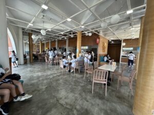 ちょっと疲れた時に休憩できるエアコンの効いた建物もあります。建物の中にはアイスや飲み物、ピザなどの軽食が売られている売店がたくさんあり、暑さから逃れて子どもたちも休憩をしていました。