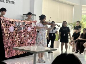 順番に劇が始まります。生徒や先生がナレーションをしたり、持参していた楽器を使って劇に取り入れたりユニットによって内容や役割はさまざまです。