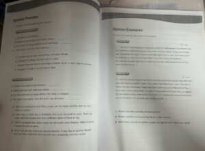 また意見の書かれた文章を読んで、メインポイントを探して文章の理解を深め、どの意見に自分は賛成するか理由も含めて先生と話をしました。