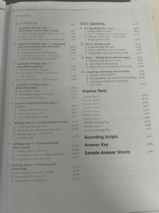 テキストの中にはすべての技能が網羅されており、試験の対策やその練習問題、最後には数回の模擬テストが収録されているのでこの1冊でIELTSの学習を進めることができます。