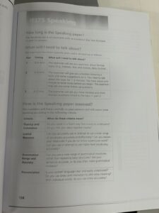 こちらはスピーキングの章になります。ここではどのような質問がされるのか、その応答方法などについて記載されています。またアプリケーションの中にビデオが収録されており、スピーキングの様子を見ることができるので、どのようにテストが行われるのかイメージをすることができますね。スピーキングの先生は面接官となって例題を出してくれたり、文法を直してくれたりしながら授業を進めてくれます。もちろん1対1の授業なので、そもそも話すのが苦手!という方は基本的な会話から始めることもできます。先生と相談しながら授業を進めてくださいね。